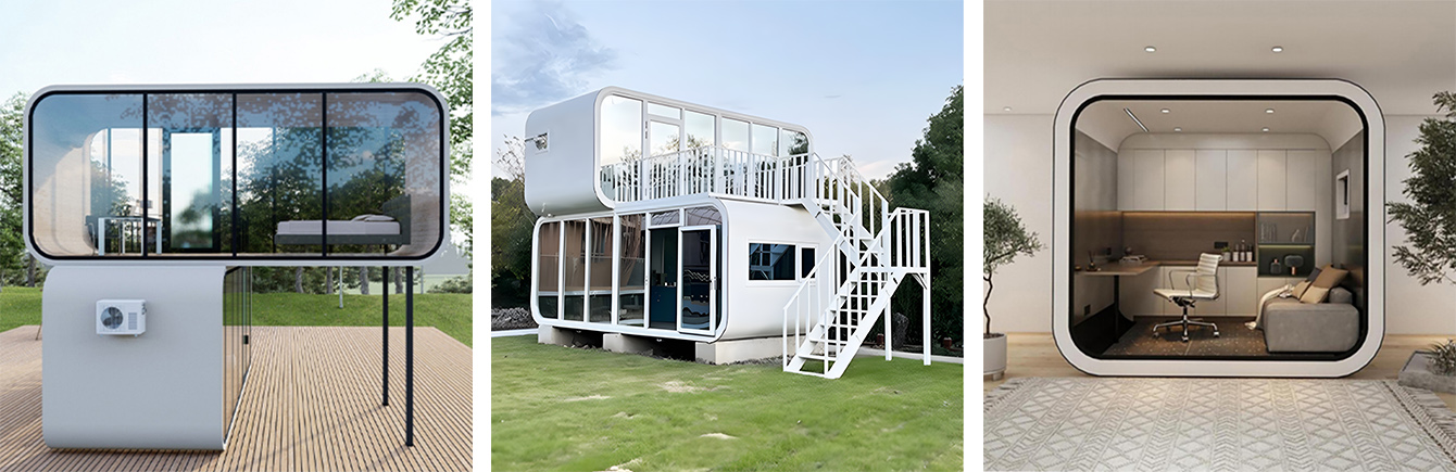 The name "Apple Cabins" derives from their unique, modern aesthetic inspired by the simplicity and elegance of an apple. These cabins feature a rounded, sleek design with smooth lines, offering a blend of natural beauty and architectural sophistication. Available in a variety of sizes and layouts, they cater to individual homeowners, businesses, and developers seeking to provide unique, functional living spaces.
